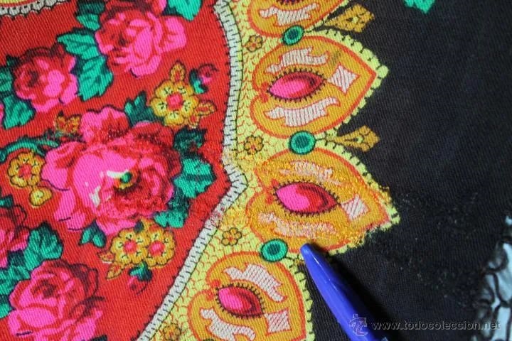 Множество сходства в композиции (контрастная, в данном случае - красная, полоса по периметру), в деталях - цветочки, веточки, "бусинки" на веточках, красная штриховка, заполняющая поле: в этом платке - в сердечках, в наших "португальских" платках -в листочках рогов изобилия, узор из "кочережек" по линиям контуров и многое другое.