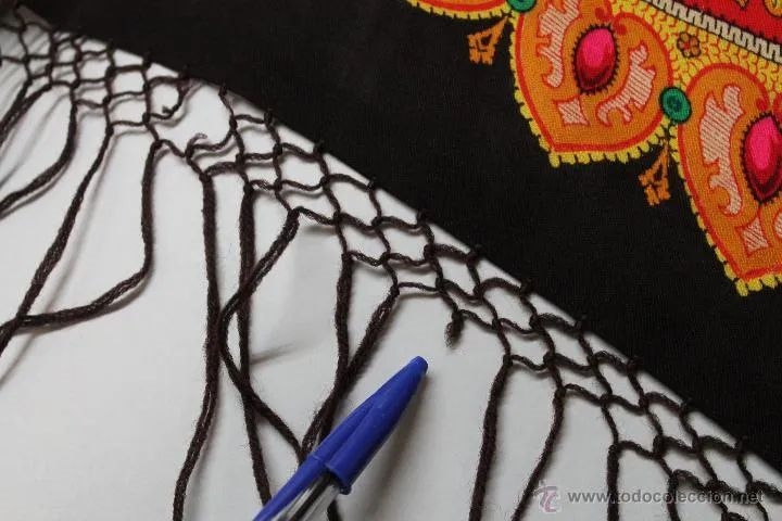 Очень знакомая шаль, но найти в архиве не смогла, а бахрому такую обычно вижу на старых хлопковых шалях.