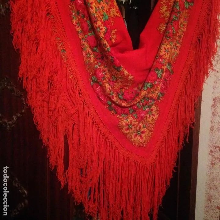 На испанском интернет-аукционе встретилась красная мериносовая шаль с цветочными мотивами, пишут, что шали 20 лет.