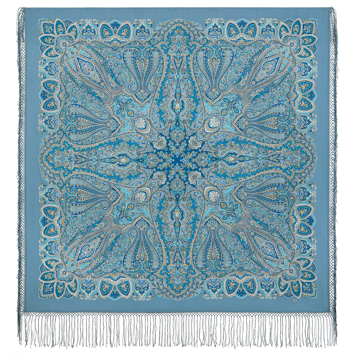 Платок шерстяной с шелковой бахромой, 125х125 см, выпуск 2019 г.