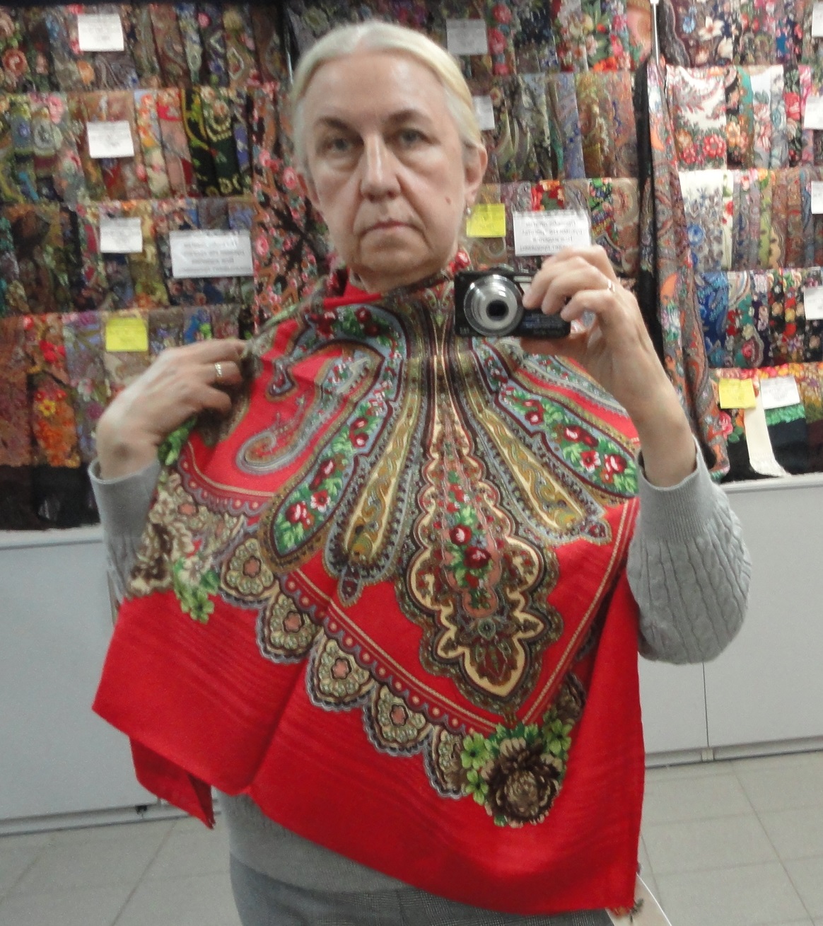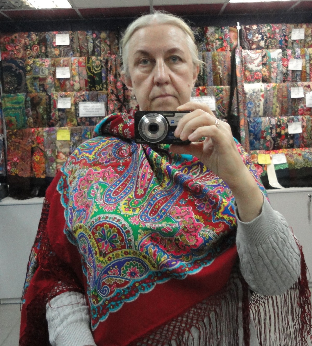 Доброго всем дня! Продолжу показывать наши примерки. К нам привезли немного новинок, которые и не новинки вовсе уже, а у нас в магазине появились вот только что. Шаль "Осенние колокола", вид 15, 148х148 см, автор Жукова Елена. на Юлии.