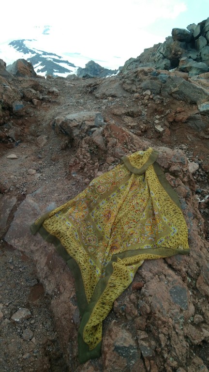 Ну зато она привезла греться свою оренбургскую косынку (отличный лайфхак для холодных походов), и мы эту косынку вписали в "концепцию" с павлопосадским платком.
