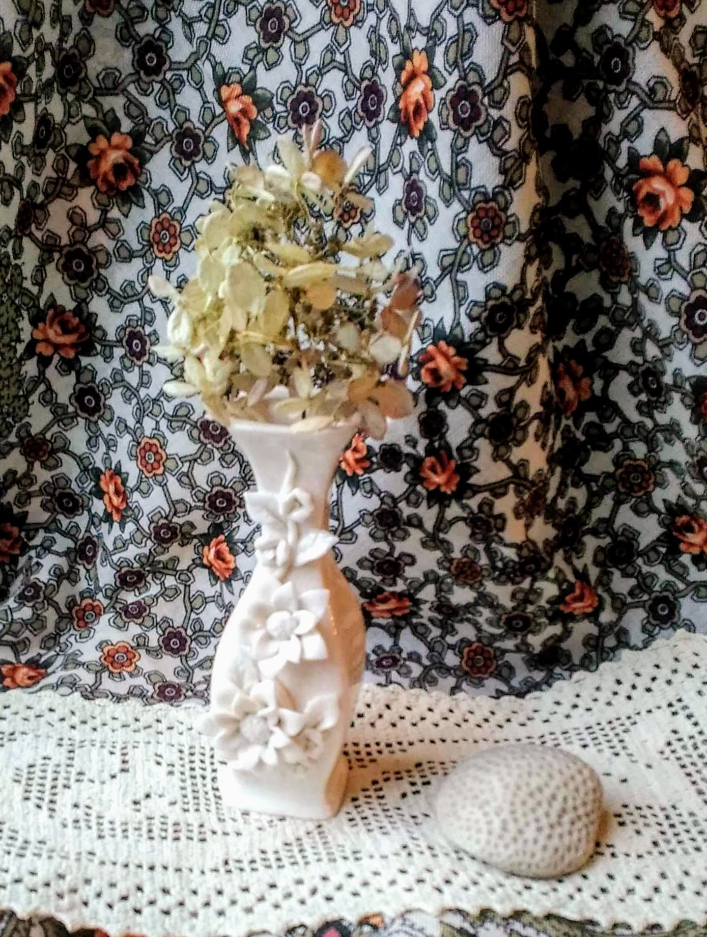 Добавлю летнее белое фото в "белую" тему. Прекрасный графичный белый платок с рыжими розами Фея сирени 2