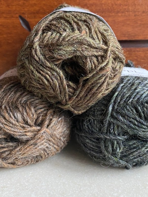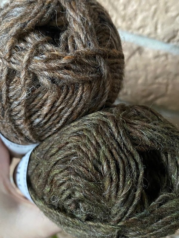 Пряжа очень понравилась--натуральные, меланжевые оттенки, очень красивые. Мягкая, для чувствительных, возможно, будет покалываться. Набрала моточков, задумала свитерок. Хочу связать быстро , возможно по кругу единым полотном от горловины. Возможно украшу просто вышивкой. Лопапейсу пока не очень хочется, хоть круглые кокетки люблю.