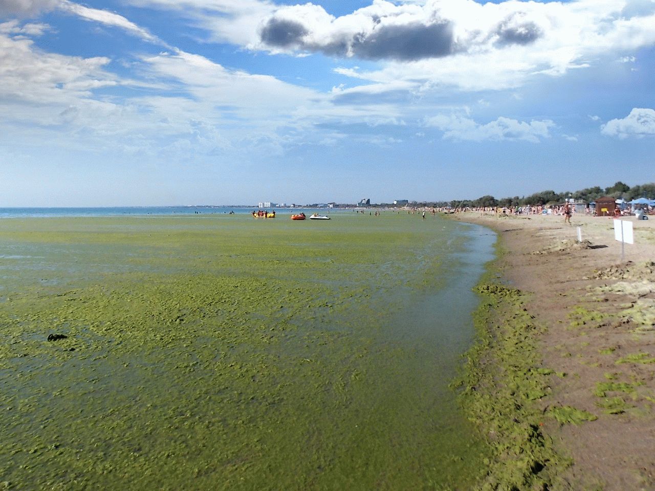 Камка,или по-научному "кладофора бродячая".Одни считают, что водоросли – богатый источник йода, причем, натурального, поэтому стоит купаться рядом, бояться нечего. Другие наоборот, опасаются токсинов и бактерий, тем более, что пахнет «подарок природы» не слишком приятно.