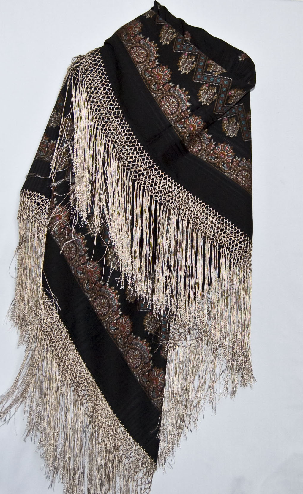 Эгесихора, если не сложно сфотографируйте, пожалуйста, бахрому на Вашей Молитве, нагляднее будет. На моей шерстяные бахромушки всего 9 см и поэтому смотрится куцо. А на Испанском шелковая бахрома 13 см!