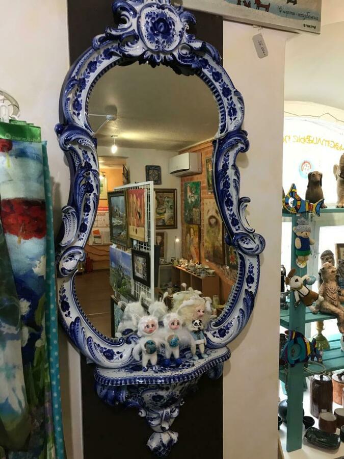 Зеркало не видела такое даже в Гжели. И майолику моего любимого автора В. Чепрасовой.