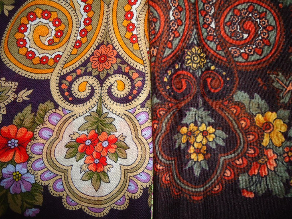 (Кликните, чтобы почитать, что спрятано под катом)...Повторю, но экземпляр старой печати, который я примеряла, был вообще глухой, казался каким-то грязноватым, очень мне не понравился, а эта красивая и нежная шаль, спокойная. Предполагаю, что и раньше были вариации печати и мне могло просто не повезти. ИМХО 18-ый колорит не для дам с собственными яркими красками, а вот если свои цвета мягкие, то заиграет и подчеркнет.