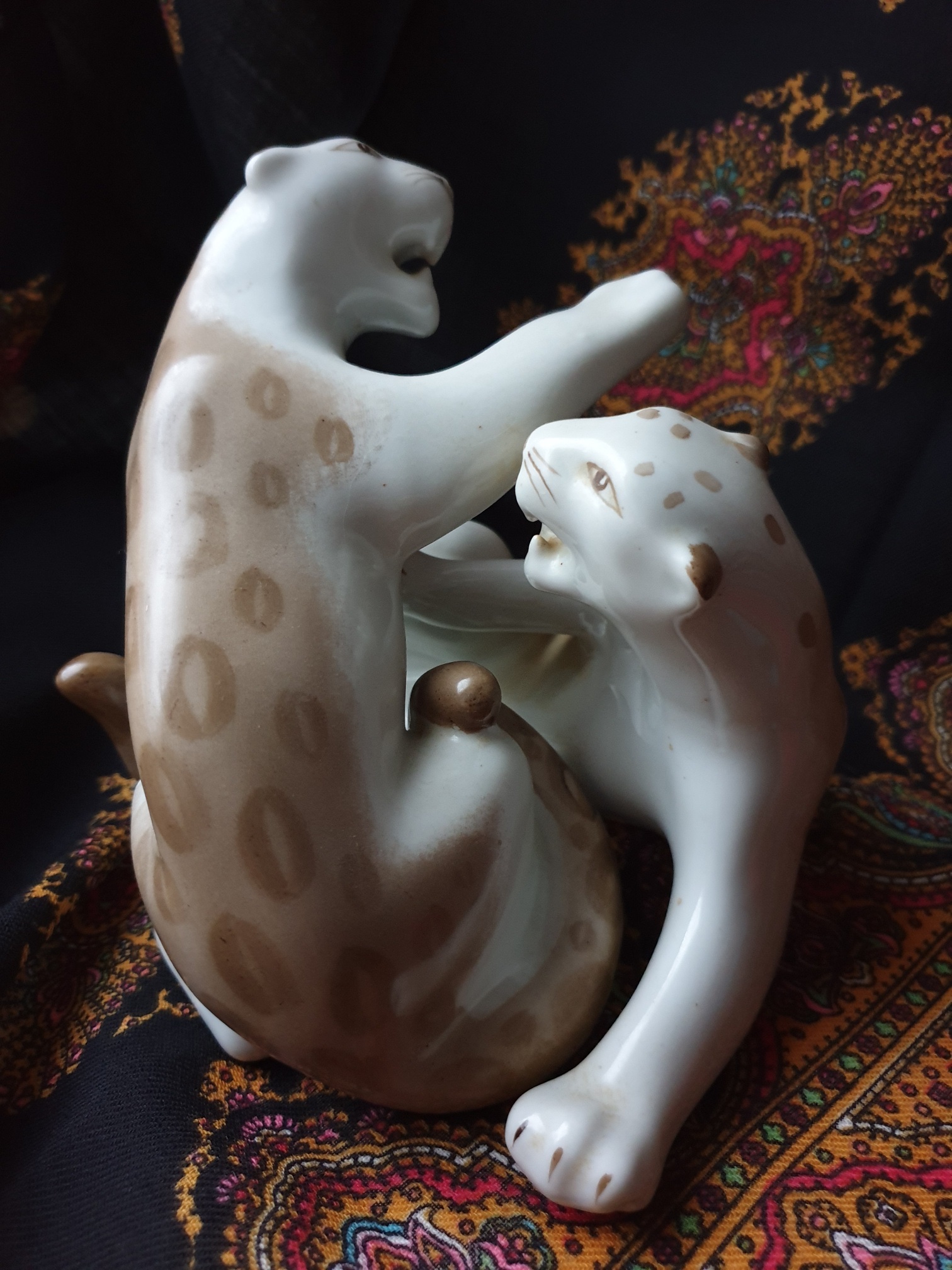 "Дерущиеся леопарды". Дмитровский фарфоровый завод. Автор С.И. Ванштейн-Машурина, клеймо 1954-1970 гг.