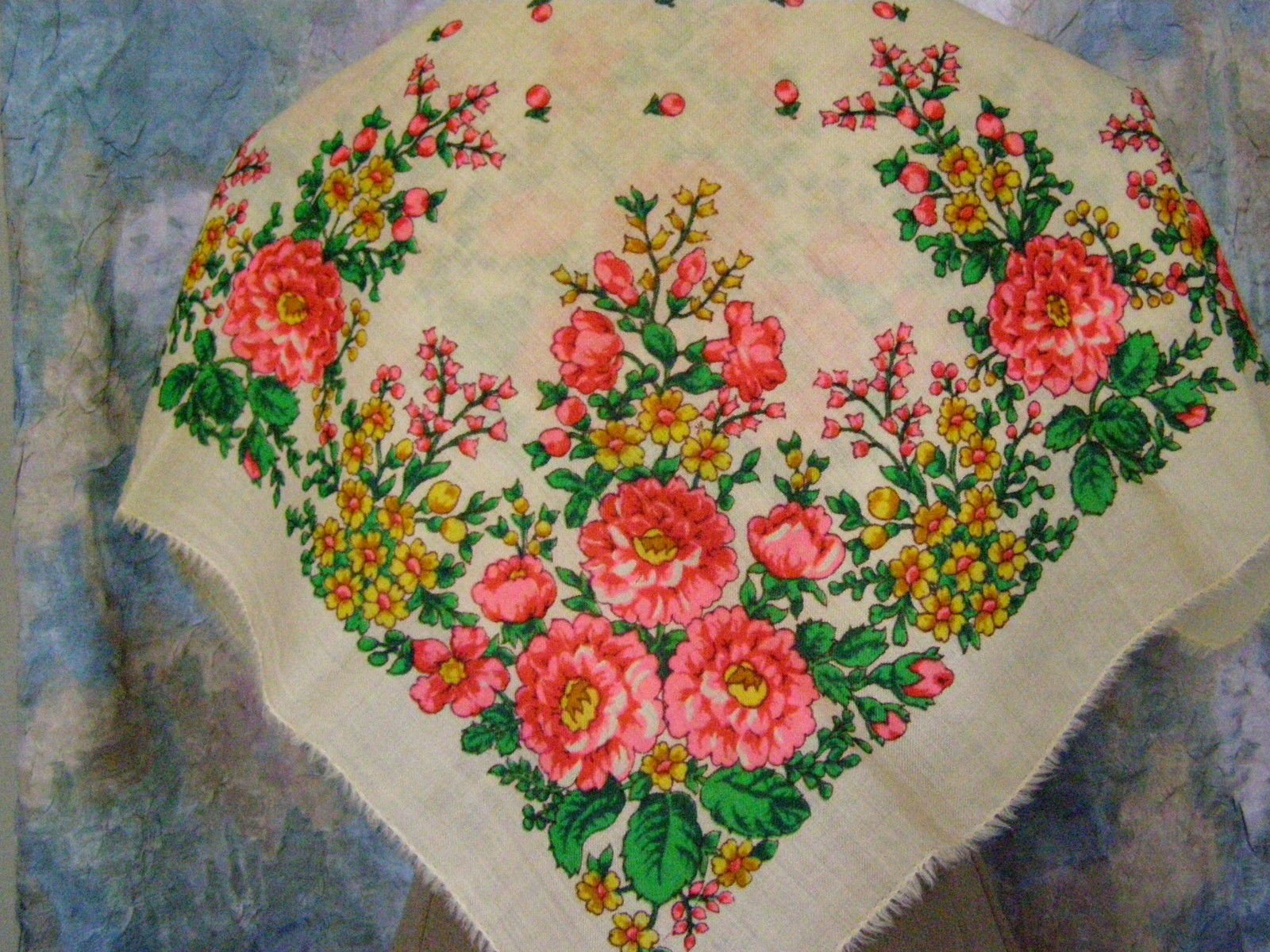 размер ок. 88х88 см. Элементы рисунка встречаются в современном платке Утреннее сияние viewtopic.php?f=55&t=1719&p=215796#p215796