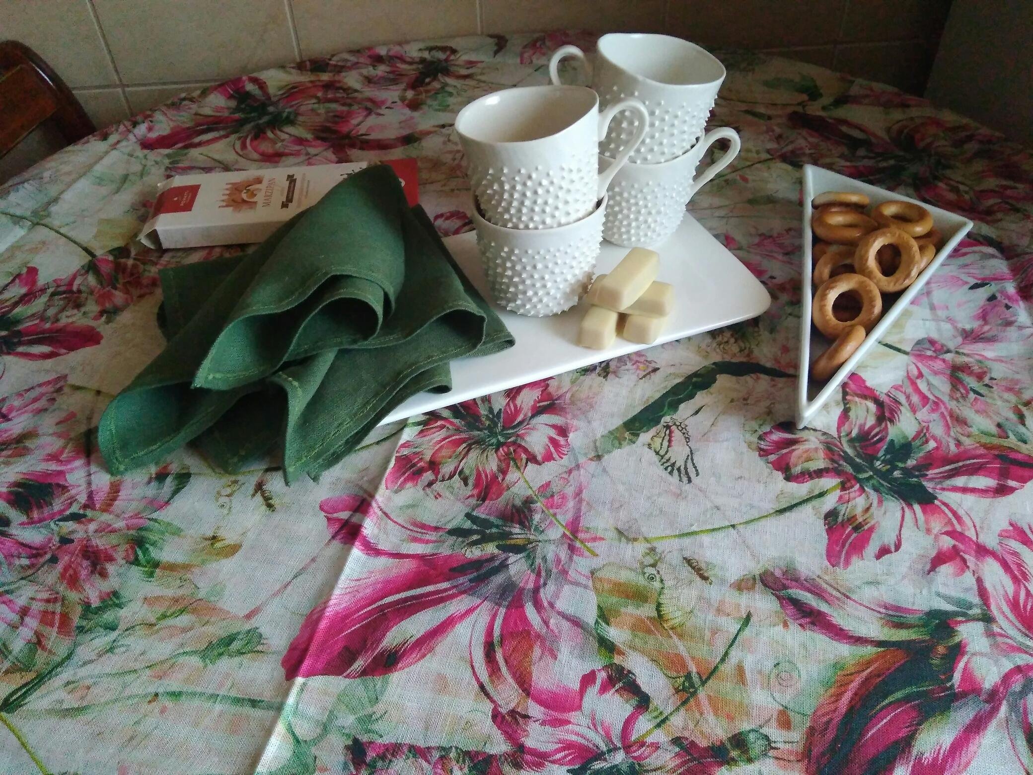 А я продолжаю получать удовольствие от скатертей. Как всегда прикладываю всё на предмет сочетания цветов, фактур, предметов и дальнейших возможностей для использования. Всё фото сделаны на телефон, поэтому проблемы с балансом белого(