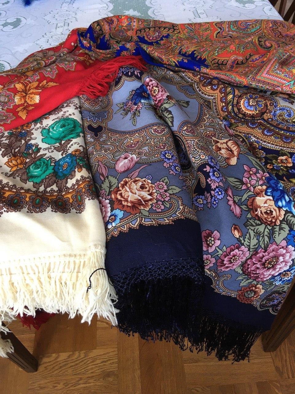 Шелк 89 Гардения 13, голубая Лариса с кашемировой бахромой, Аза 15, Бархатная ночь 14.
