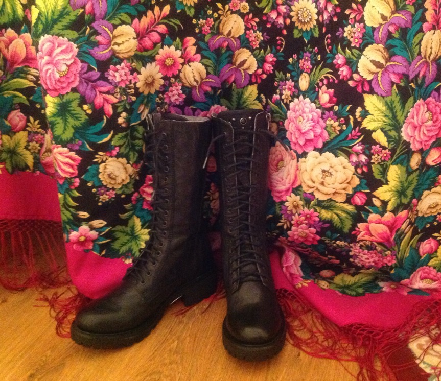 Nathalie, ^% такие брутальные ботинки я вижу с яркими и традиционными шалями. У меня тоже есть подобные. Раньше я даже и представить себе не могла, что буду когда-либо носить такие, а сейчас нормально.