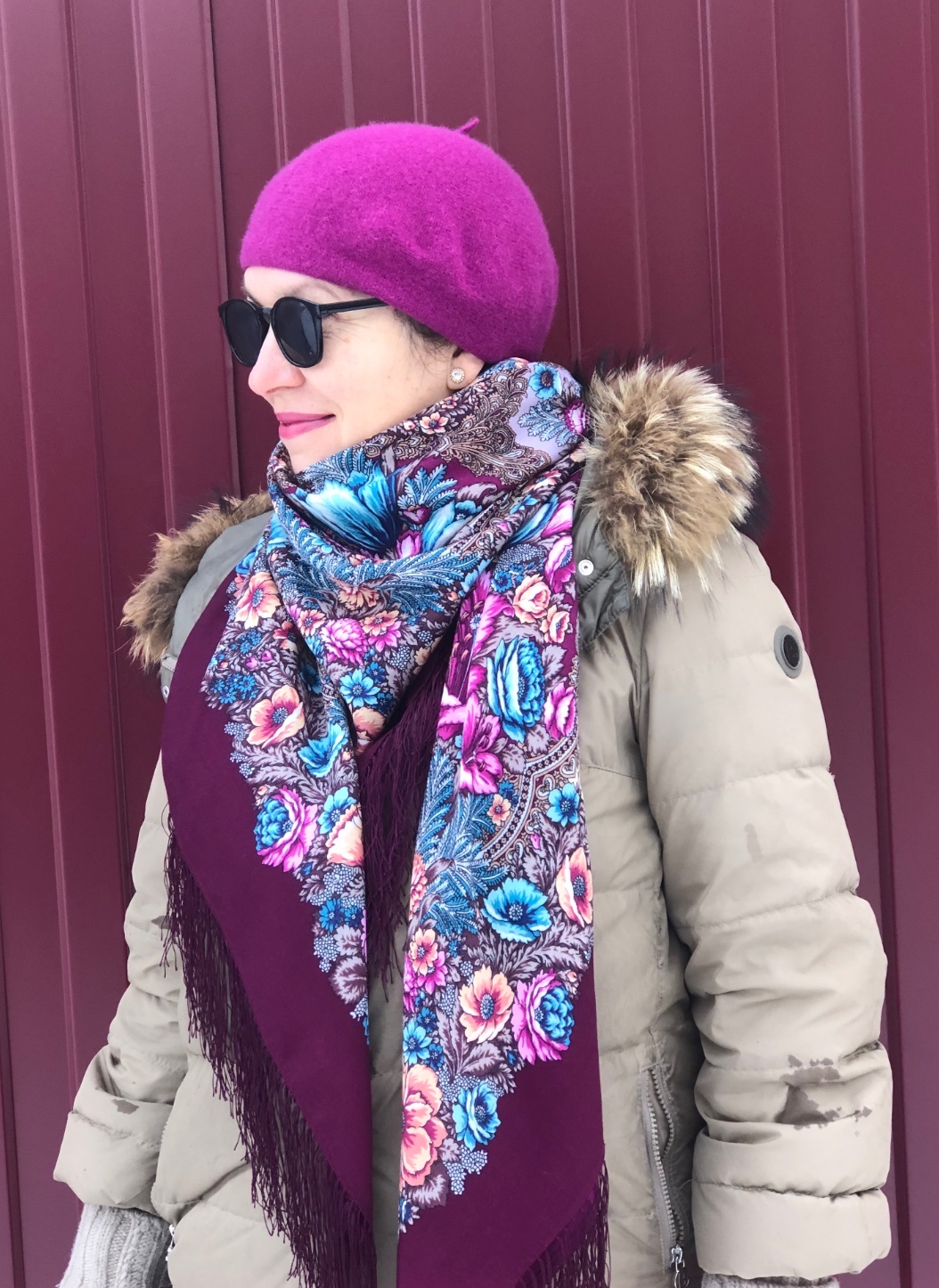 Ольга Как круто шаль смотрится с пуховиком и беретом спокойного оттенка. Такой цвет как бы успокаивает помпезность и театральность шали. Любуюсь. :: ^%