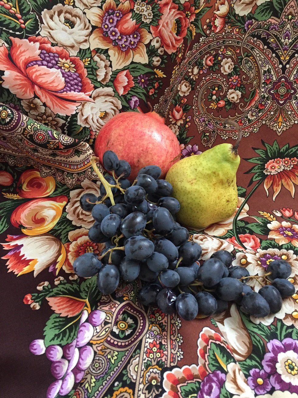 Какой цвет солирует? Тоже пока не поняла. Под разным освещением по разному. Мне он пока, в общем и целом, серым видится. А муж сказал - красивый ГОЛУБОЙ платок (нет, ну как жить, а?)