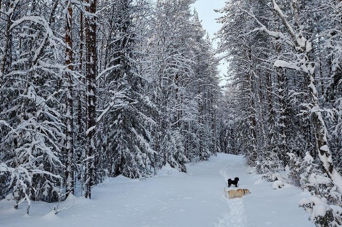 Откуда столько шерсти? Наверное, любит лежать в снегу как (черно)белый медведь
