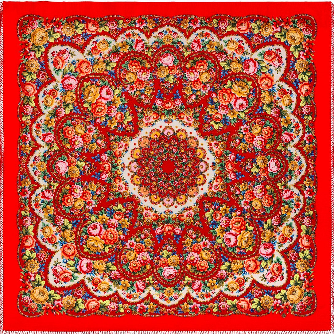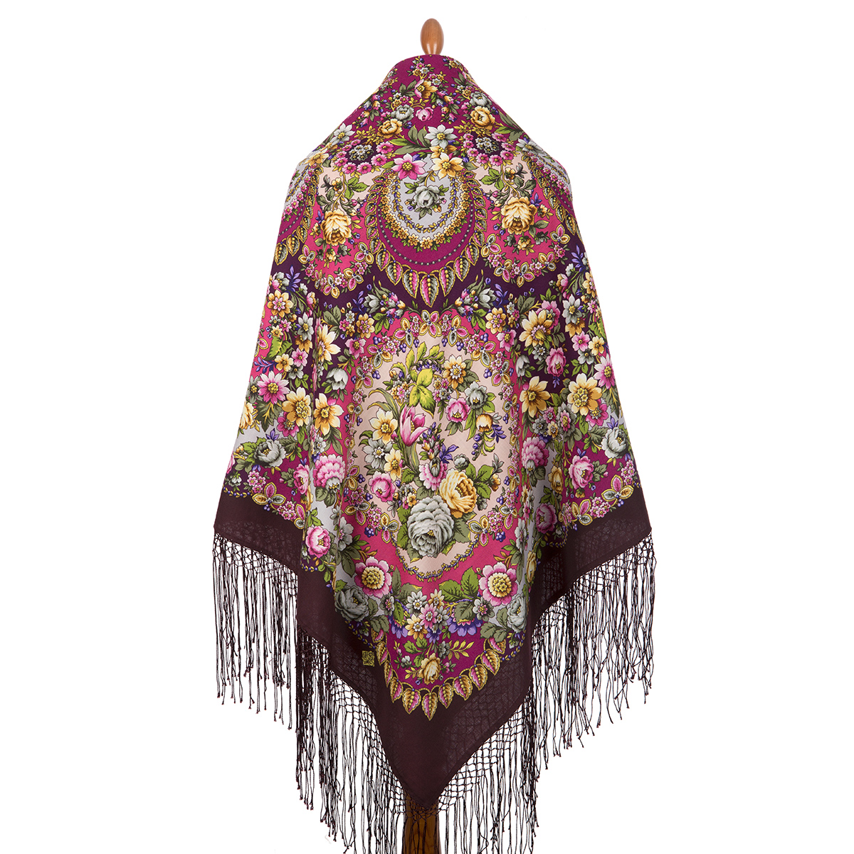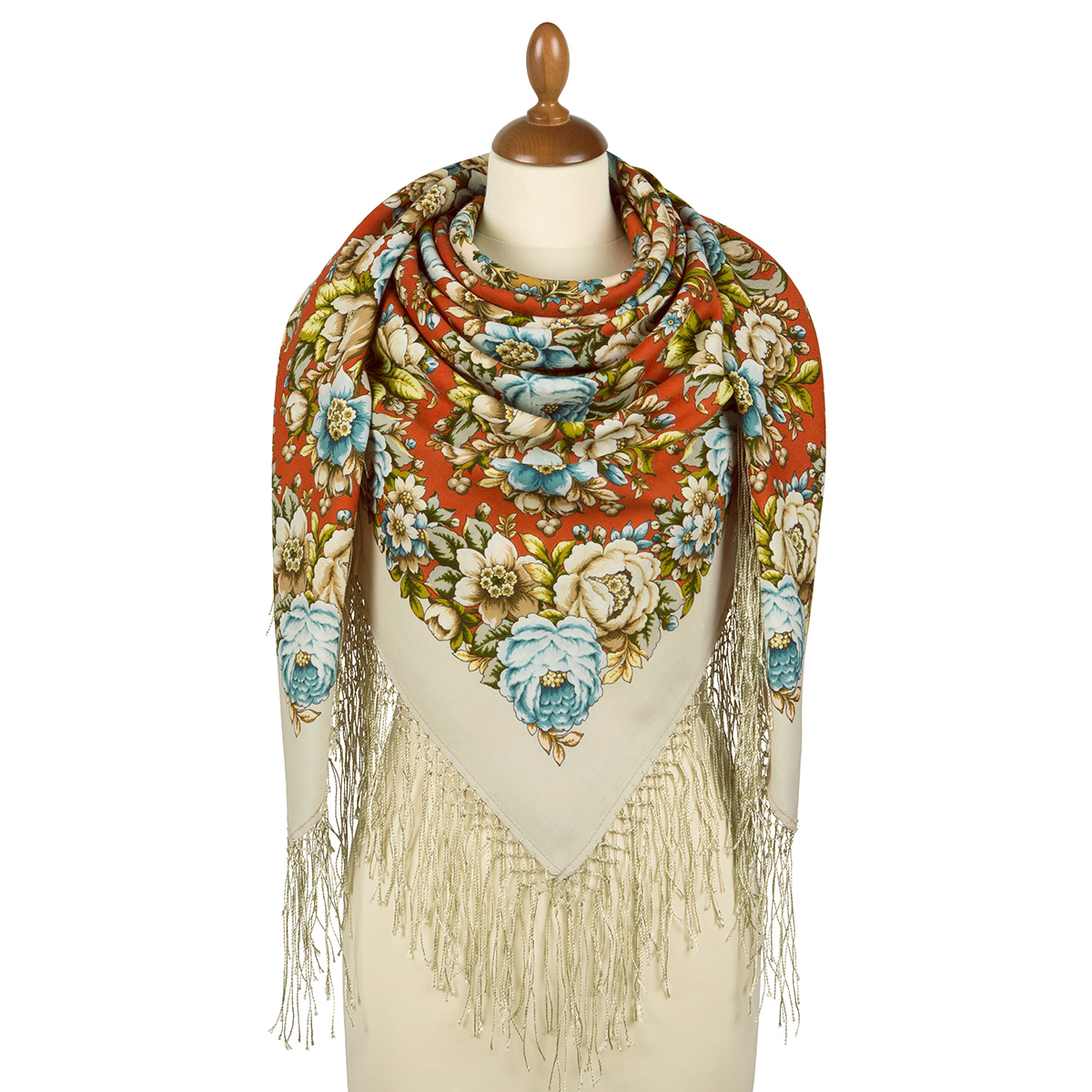 Платок шерстяной с шелковой бахромой, 146x146 см