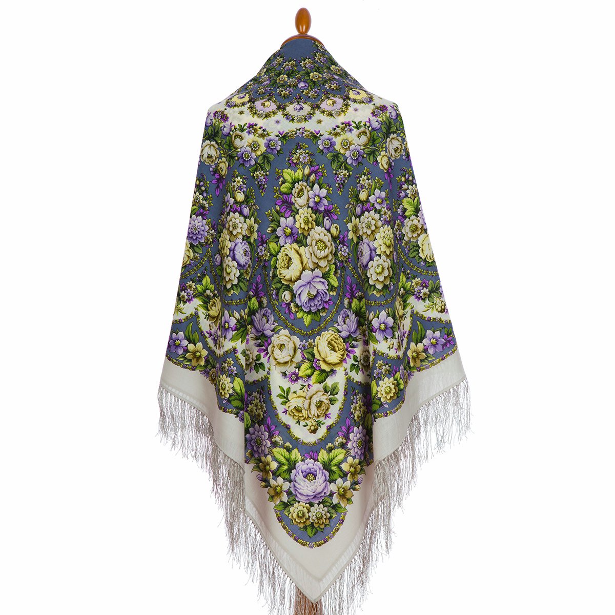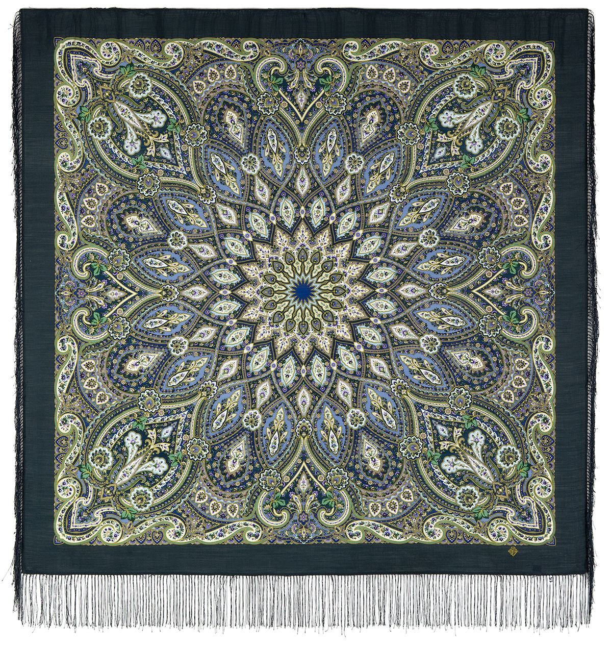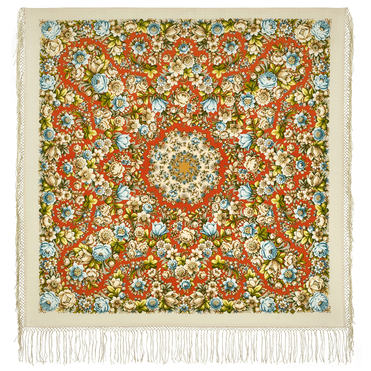 Платок шерстяной с шелковой бахромой, 146x146 см.