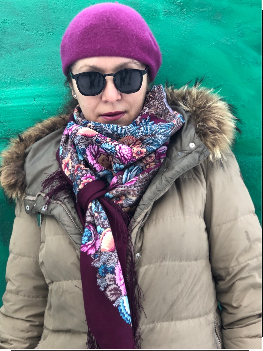 Ольга Как круто шаль смотрится с пуховиком и беретом спокойного оттенка. Такой цвет как бы успокаивает помпезность и театральность шали. Любуюсь. :: ^%