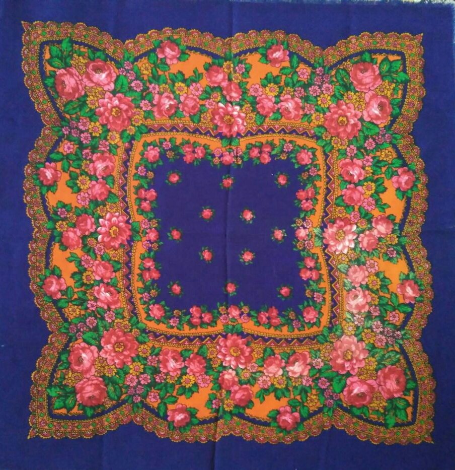 У меня похвастушки, купила платочек ппу_35 Ирины Дадоновой, очень мне нравится этот яркий рисунок... Судя по этикетке, почти 30 лет в сундуке у кого-то пролежал...