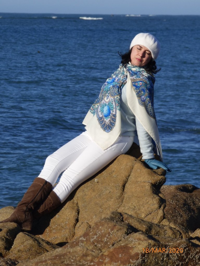 Труня, умничка, как хорошо, что вы показали Пасьянс. Я только вчера его забрала с почты и тоже, как и вы, примеряла его на разные лады. Очень хороший платочек! Я его воспринимаю как альтернативу шелковым. Шёлк, при всей моей любви к нему, соскальзывает, а вискоза держится, драпируется и именно этот платочек выглядит замечательно. Орнамент-глаз не отвести. И вам он необычайно идёт!