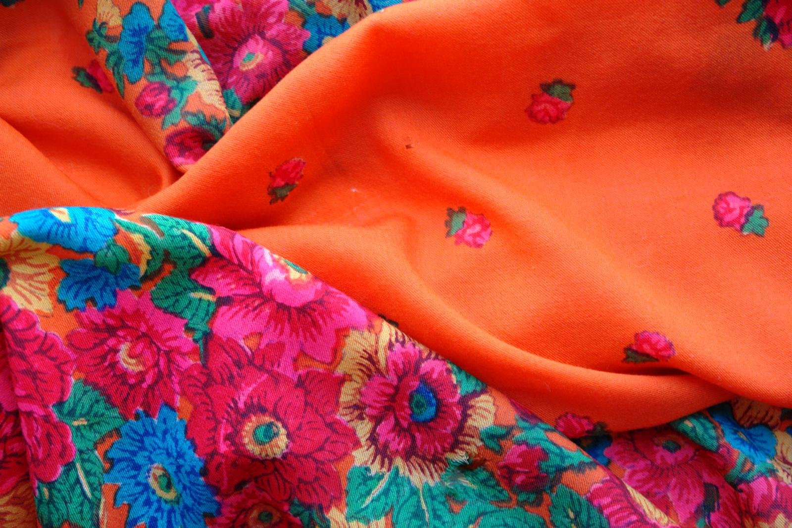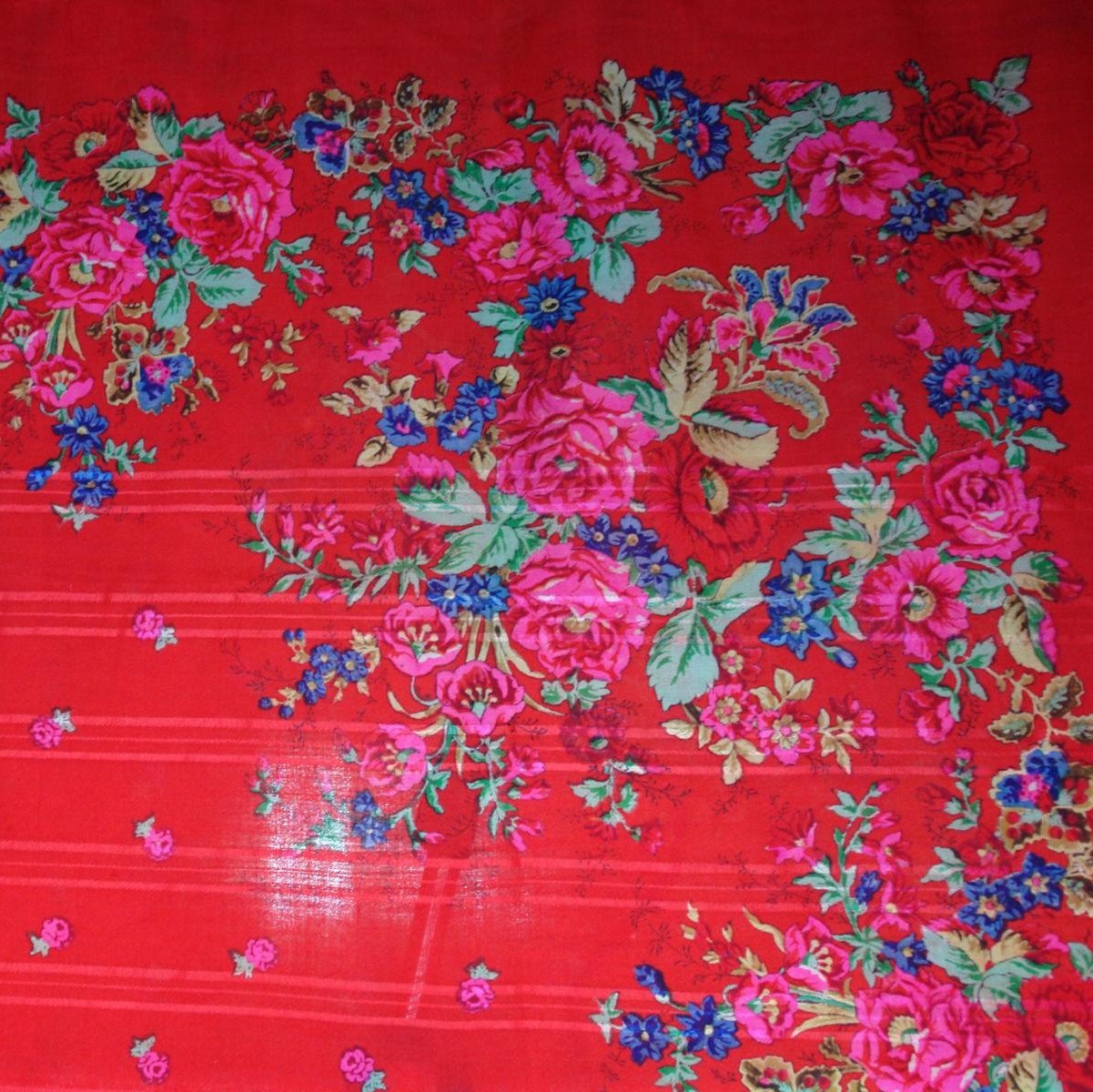 Тонкая шерстяная ткан. Ручная набойка. Размер 130х130