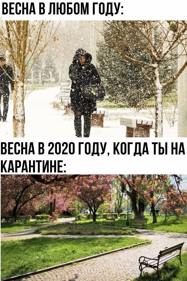 ни-ко- го! Даже машин проезжащих в нашем поселке не встретили. Минут 10 бродили в тишине, и вдруг откуда - то в громкоговоритель: "Граждане, оставайтесь дома!" и далее про карантин, по какой причине можно выйти и т.д. Повторяли несколько раз, очень громко и четко, Борз даже уши поставил и послушал с интересом. Мне понравилось, молодцы! Вместо маски прятала лицо в палантин - погода распологает - похолодало у нас, ветер ледяной и одинокие снежинки. А так бы я с удовольствием в огородике поковырялась, он уже весь открылся. Но я любуюсь на него в окно