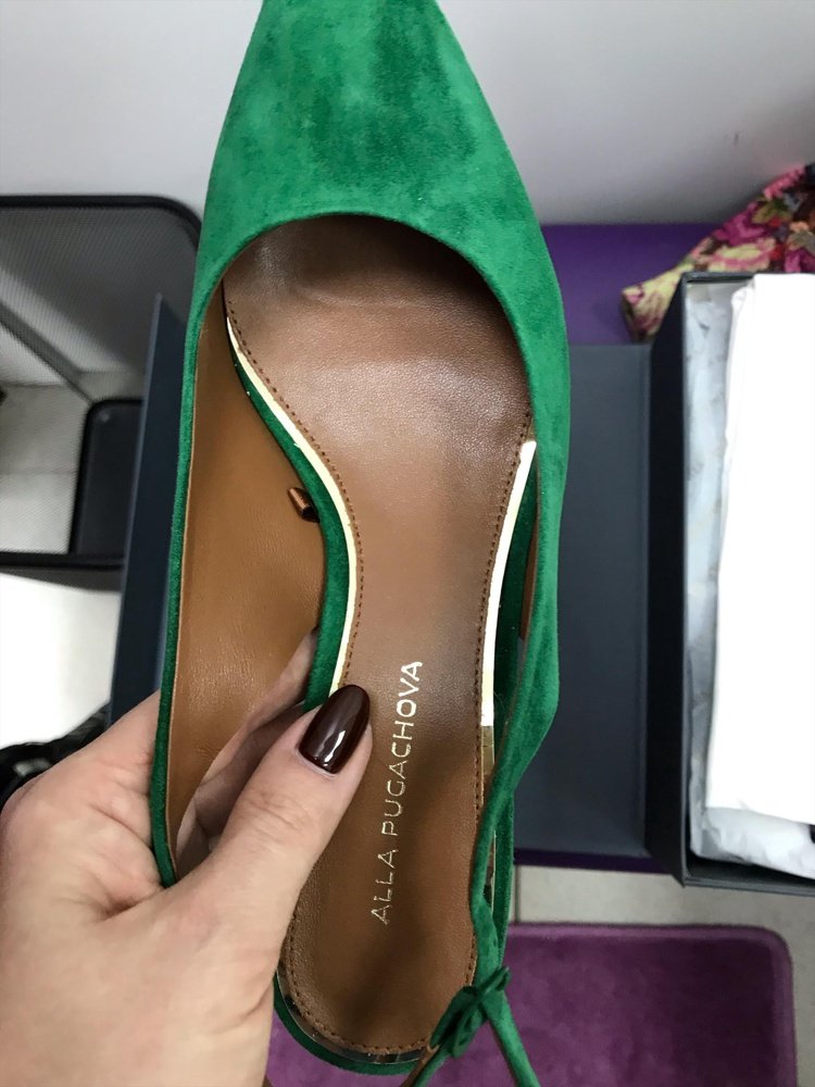 Туфли из натурального велюра от бренда Аллы Пугачевой отлично подошли к зеленочно-изумрудным акцентам любимого палантина ( условно-"Слон" или "Шапито", шерстяной набивной, из разреженной ткани )--"10497".