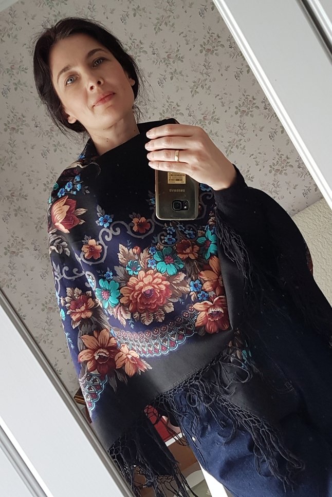 Демонстрируем ношение платков и шалей.