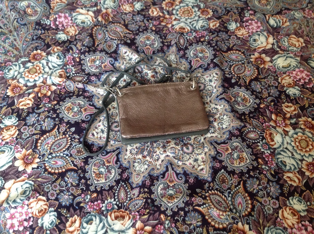 Купила сумочку 3 в 1 в итересном сочетании двух оттенков серого и насыщенной бронзы. Много сочетаний можно с ней придумать. С 2-мя платками спелась сразу.