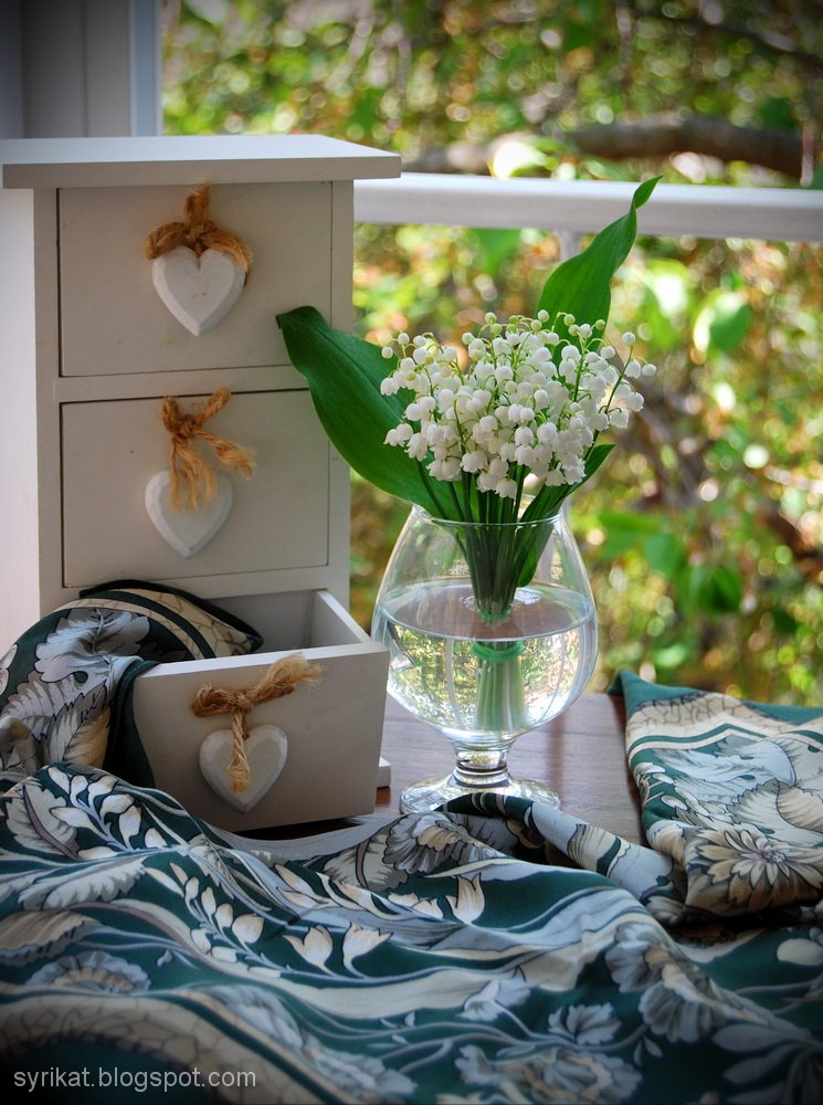 Natasik, Ваши ароматные ландышевые композиции явственно говорят о том, как Вам хочется на волю: на заднем плане - вид за окном... Это не потому, что я тут психолога из себя строю, просто за собой замечаю, что роль окна в последнее время существенно возросла :lol:
