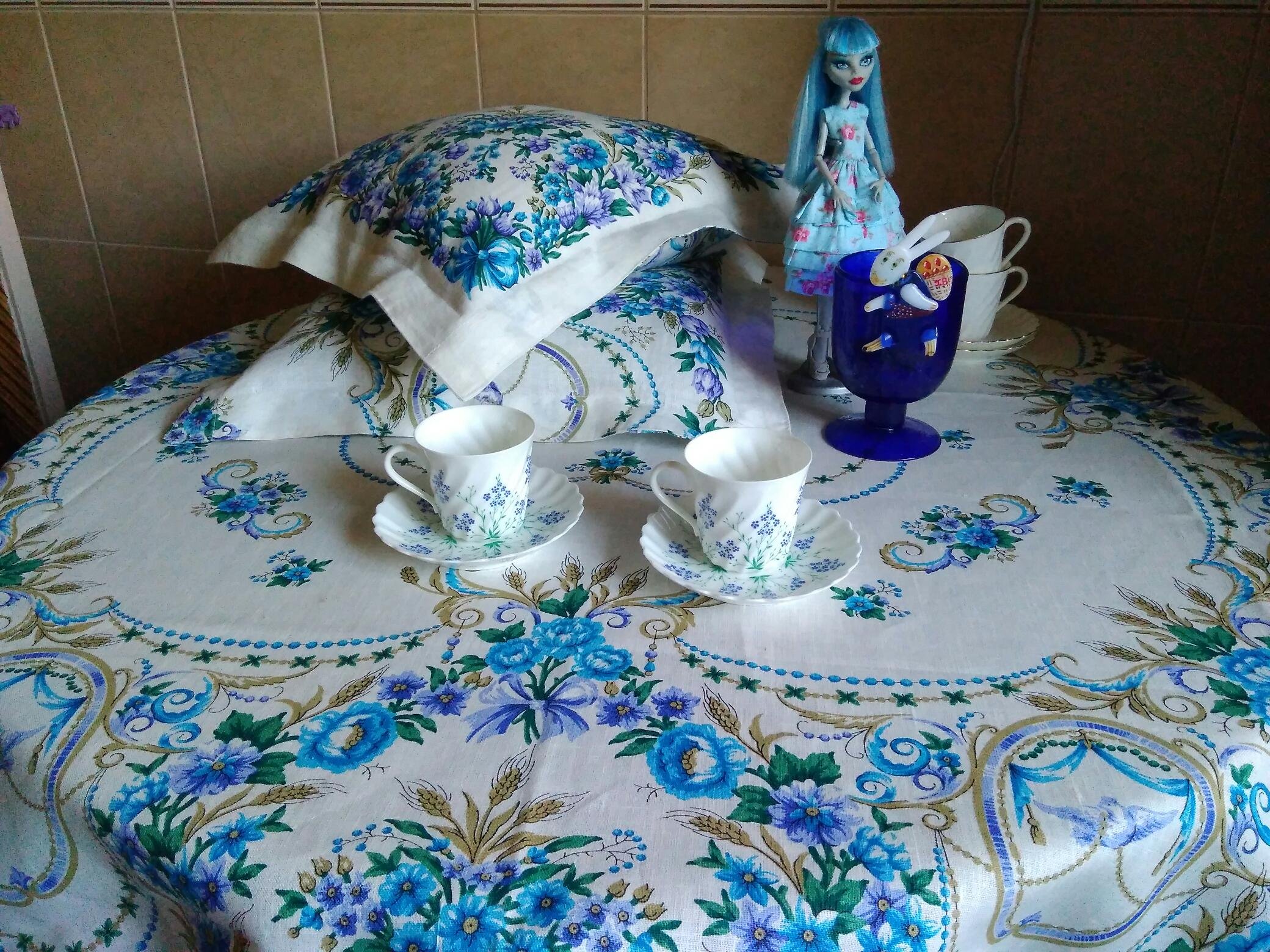Принесла ещё одну скатерть - Белую птицу. И пусть мануфактура уже не выпускает скатерти (а жаль), но мы же ими пользуемся.