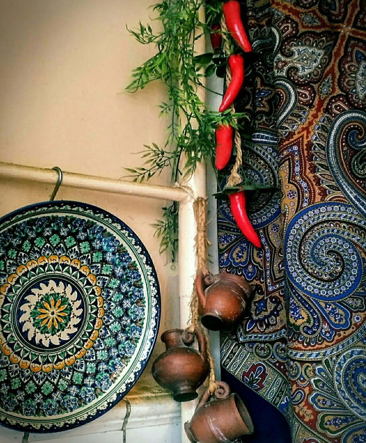 а как узоры платка и блюда синхронно закрутились! и в рисунках сочетание, и в цветах! гармония разных культур( блюдо ведь узбекское?)!