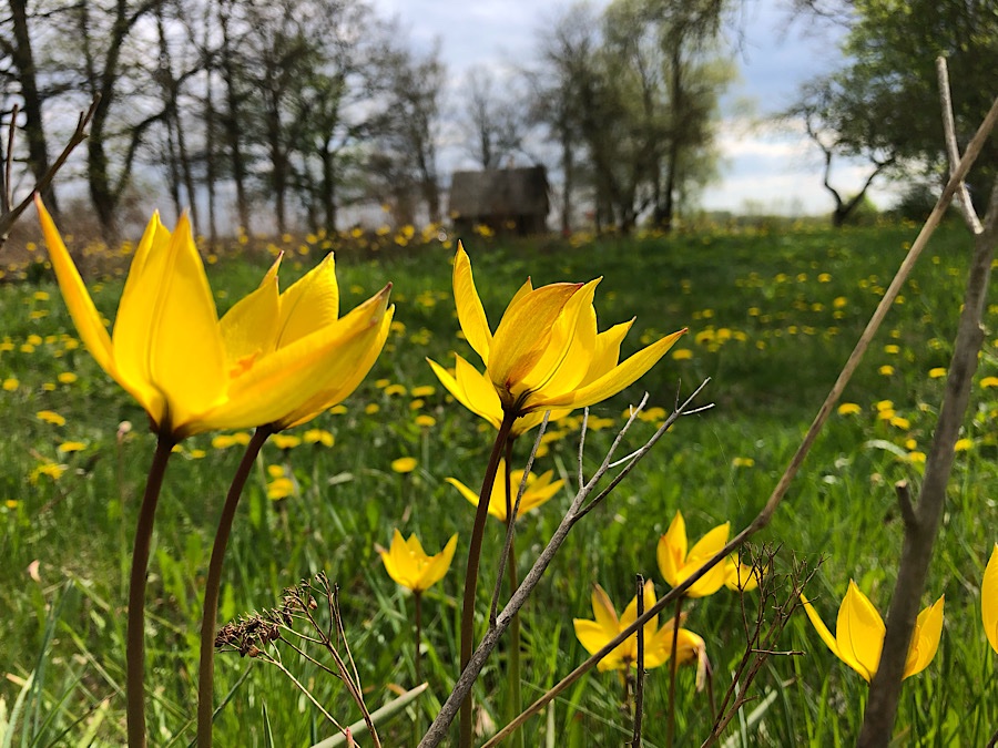 Avesol Чудесные тюльпаны! дикие душистые с острыми лепестками особенно восхитили! и одуванчиковый луг, и деревянный домик очень кстати