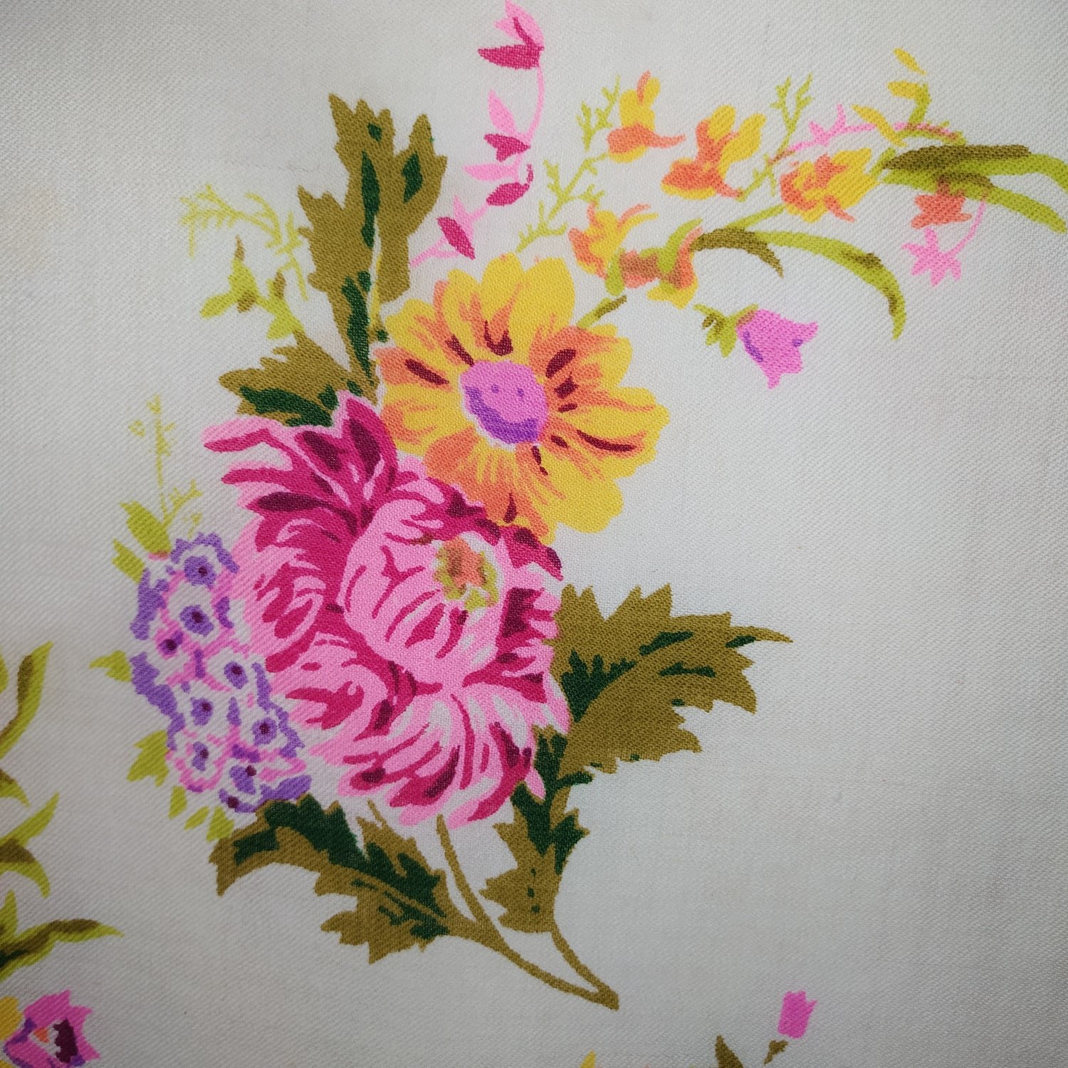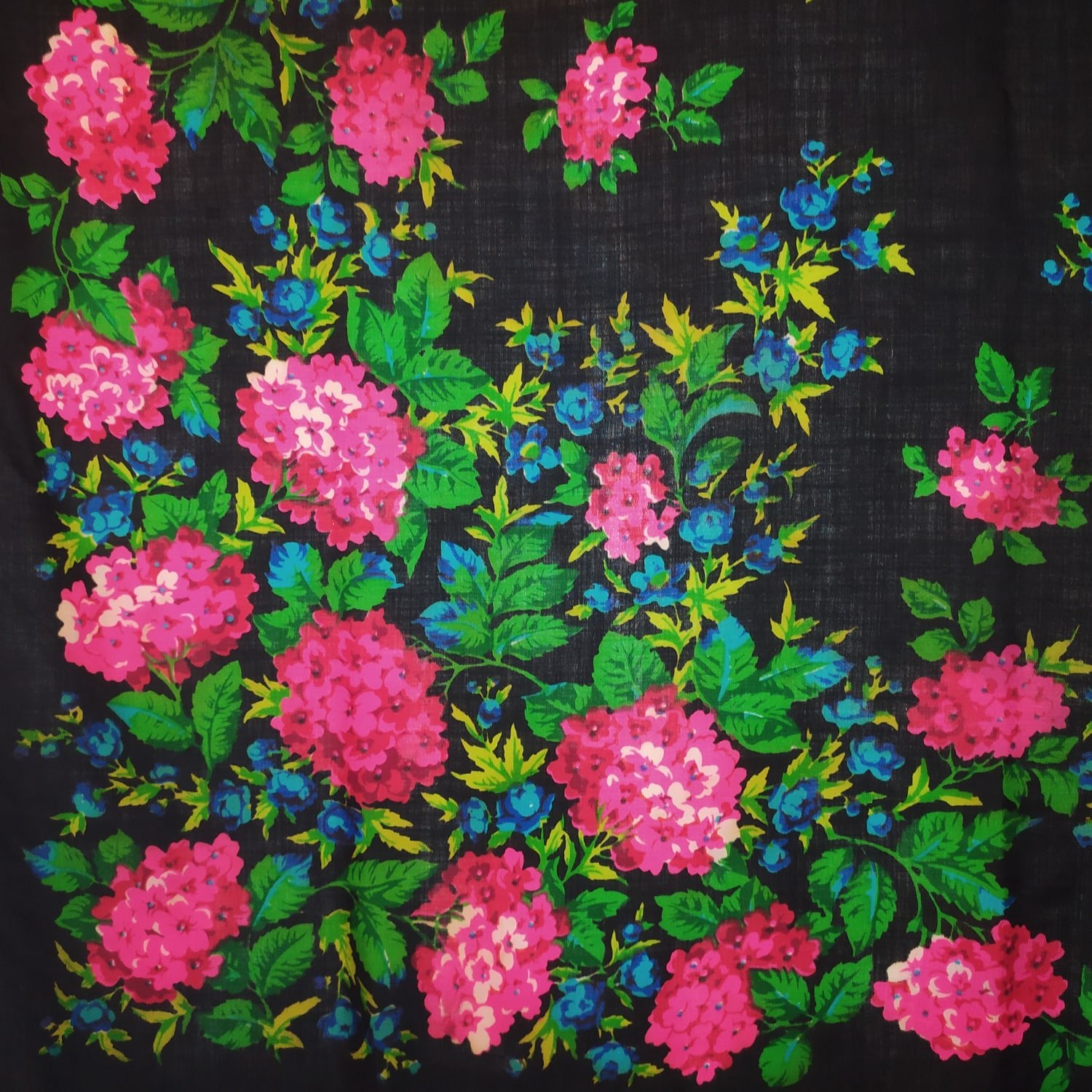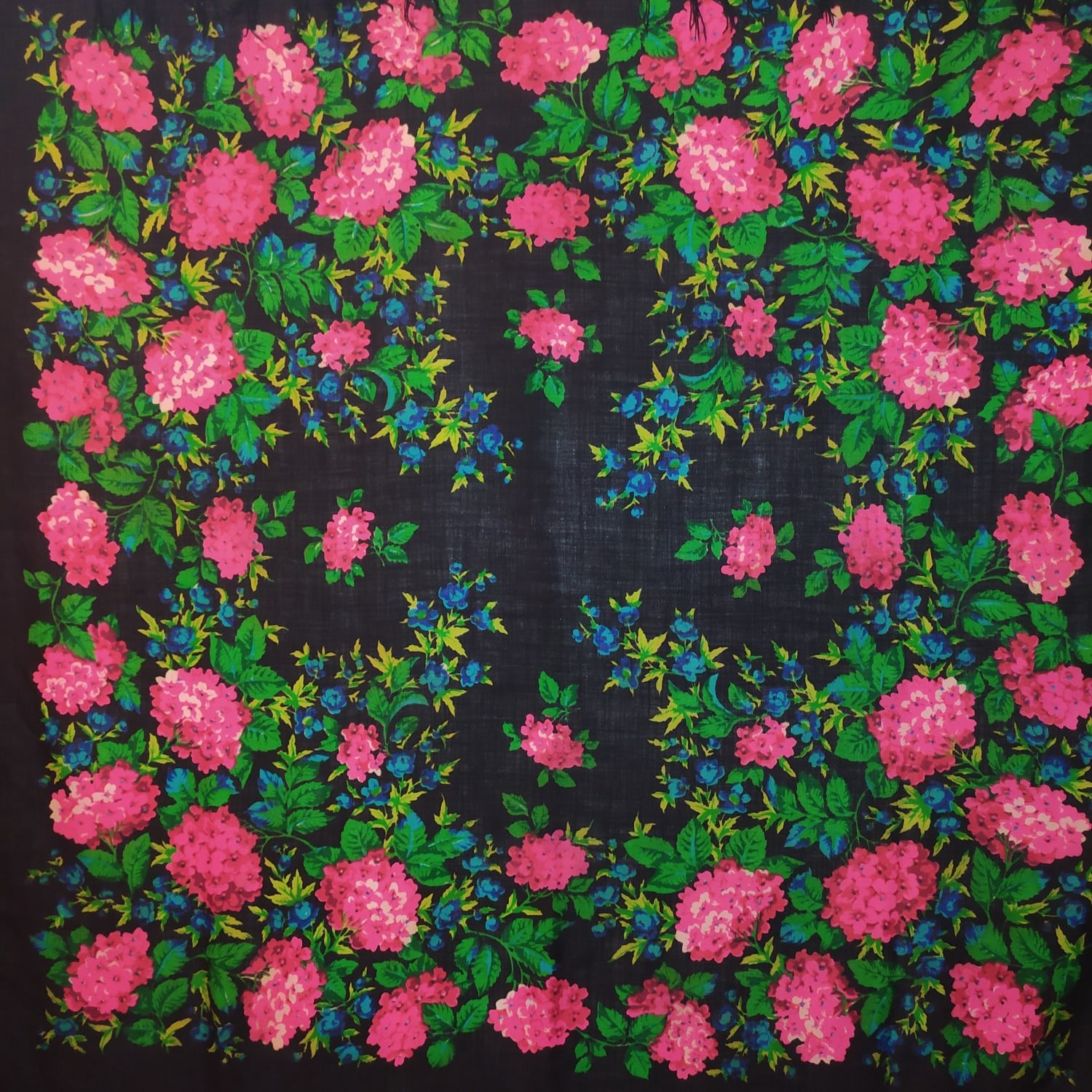 Я увлеклась датировкой платков по ярлыкам, принтам и печати логотипа в рисунке. Вот на моем нет никаких опознавательных знаков. Для вшивного ярлычка, видимо, он появился рано, а для печати в поле - поздно.