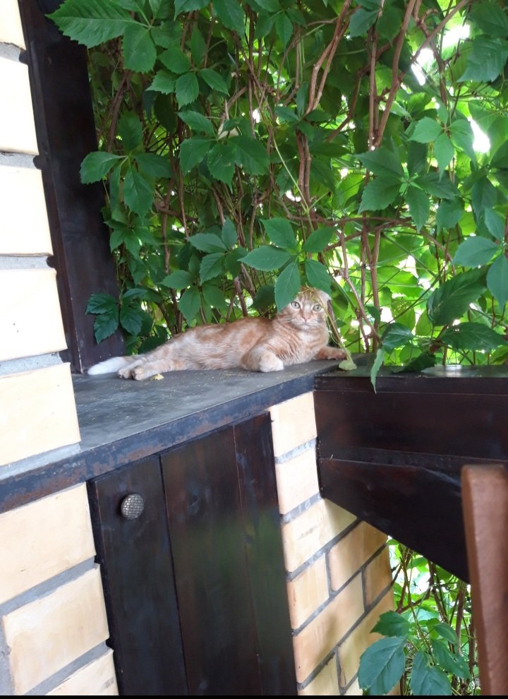 А это мы с Симбой обед в беседке готовим