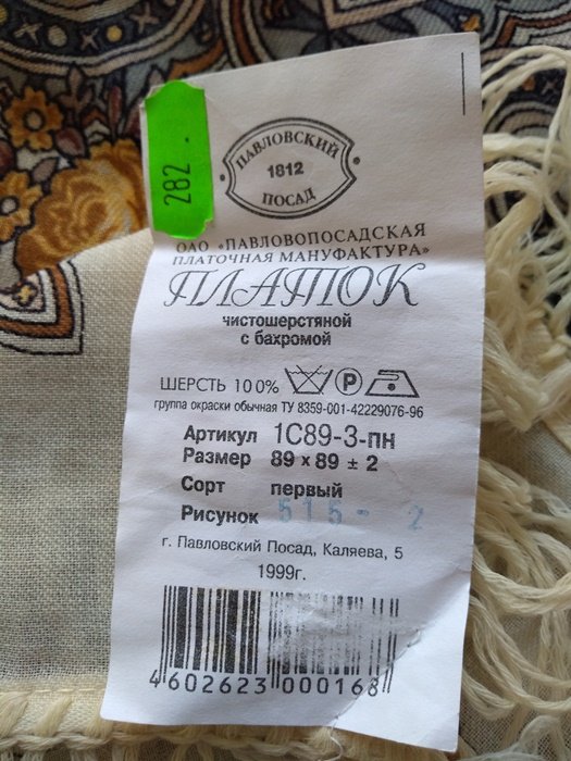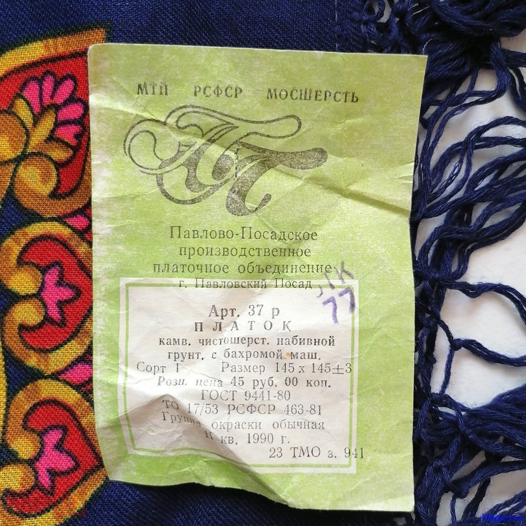 Я на днях получила такой хлопковый платочек ппх-2 колорита 1.2.1 в неиспользованном состоянии с приклеенной этикеткой.