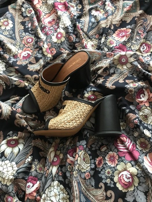 Натуральная кожа отделана соломкой--думать, какие платки подойдут. ( Буду благодарна за рекомендации) Наверное, это вискоза , хлопок, шелк. Сабо закрытые и на прохладную погоду подходят. Покажу в паре с любимейшим "Праздником"-18 (ношу в этом сезоне не снимая).