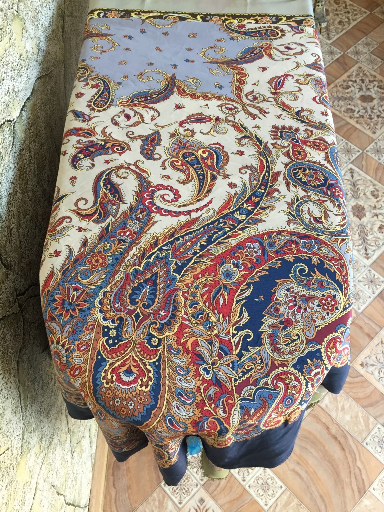 Очень красивый платок, однако в магазинах города нет в продаже понравившегося мне колорита: красный на черном. Приятный на ощупь и расписной, если найду, обязательно заберу себе.