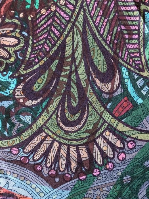 Мне платок понравился. При всей "сложности" расцветки смотрится вполне повседневным и универсальным в плане гардероба.