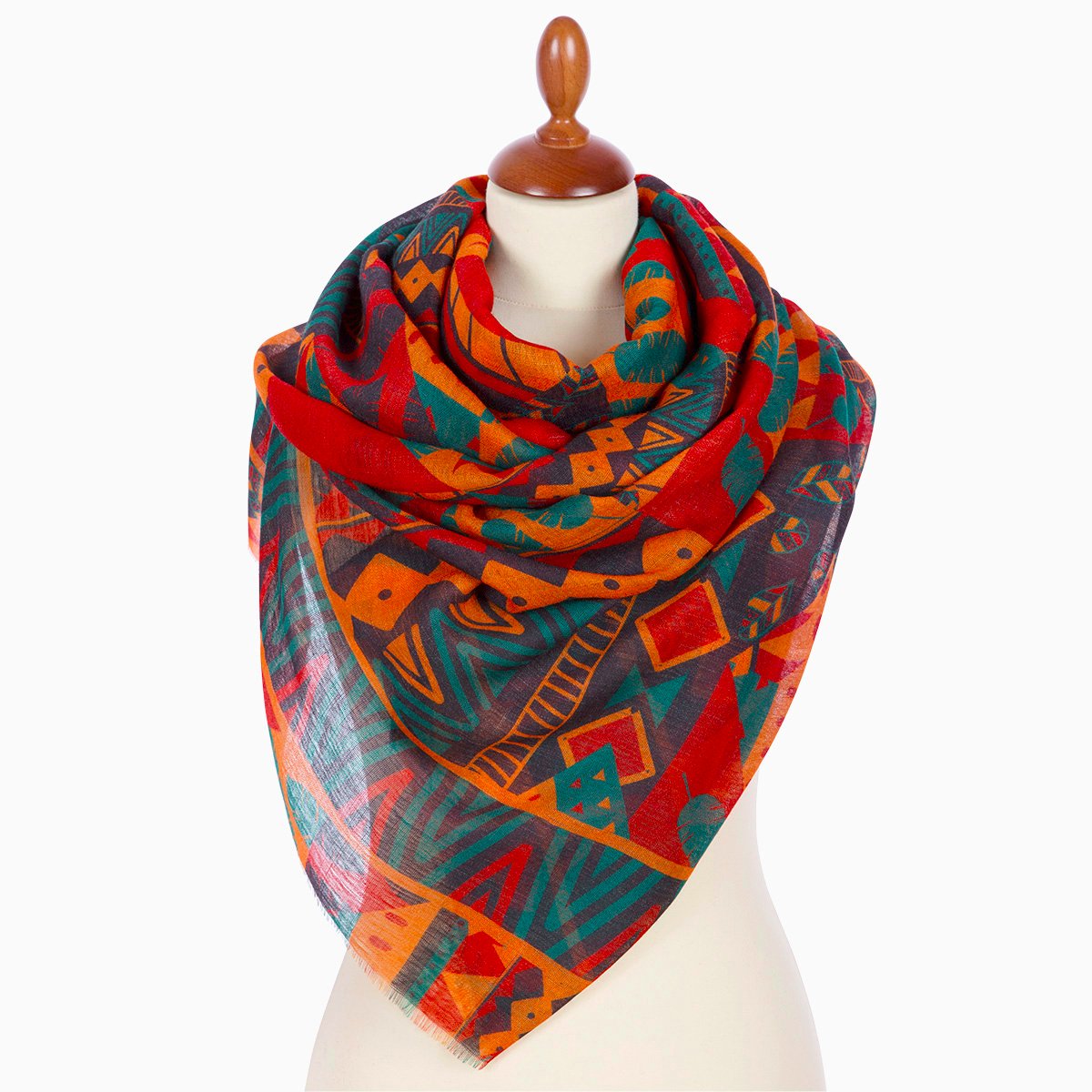 Палантин шерстяной набивной "10839-12", вид 12, 80х230 см На манекенах
