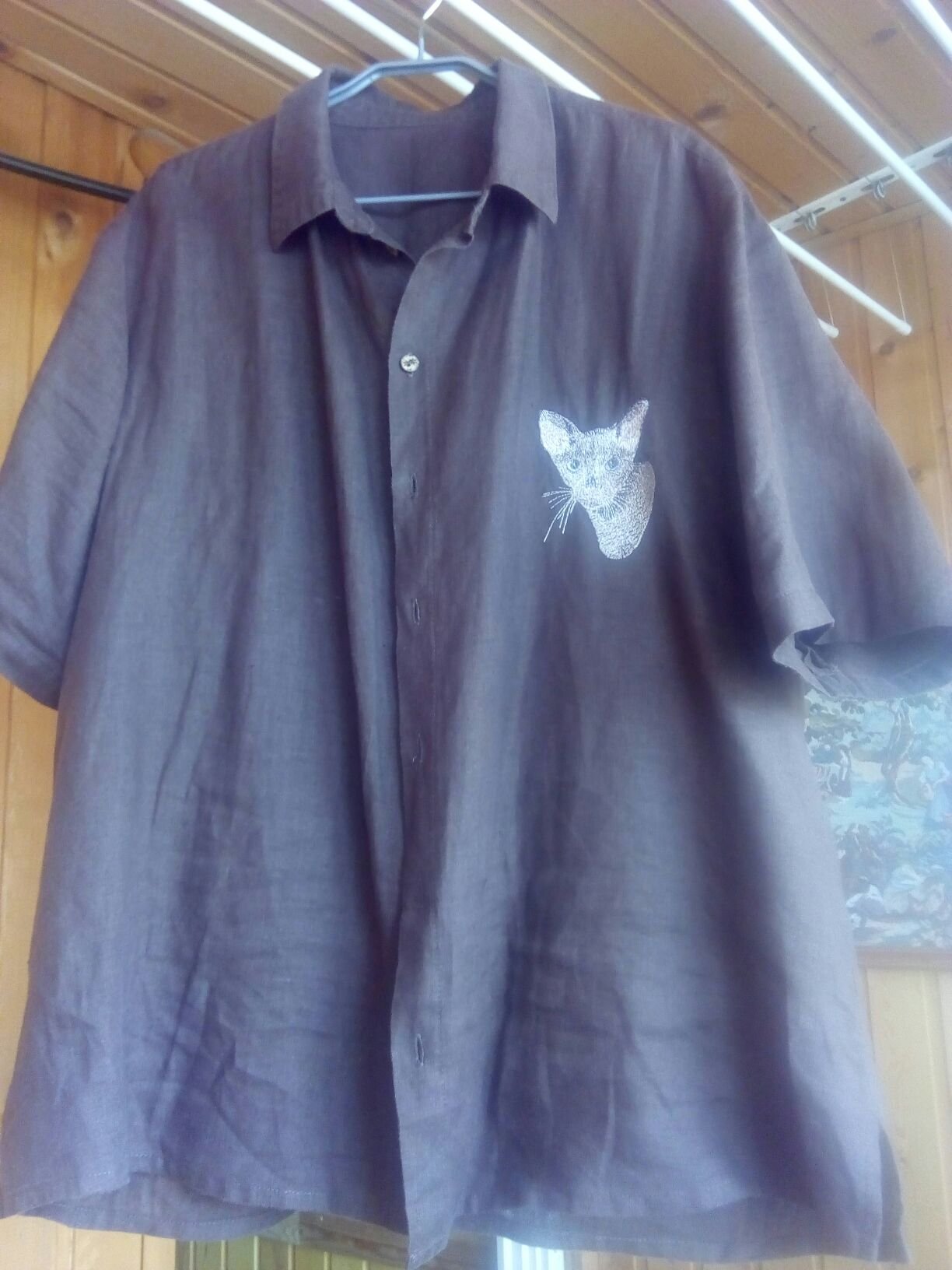Изо льна шью рубашки мужские. Иногда удается побалагурить: кошечку вышить.)