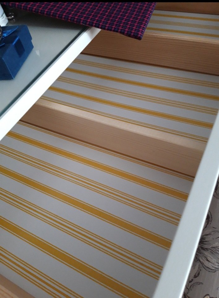 Столик у меня Икея, и мне очень он нравится. Но вот ящички я доработала - внутри были жёлтые полоски и ужасно не нравился звук, когда что-то кладёшь в него (дно фанерка). Плюс по этому гладкому дну при открывании/ закрывании всё каталось как по льду, и сбивалось в кучу. Бррр...