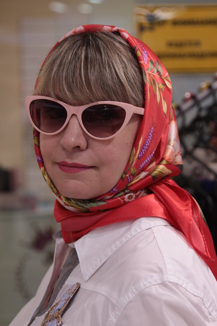 В магазине очень понравился атласный платок Белый танец, цвет достоверно не передался на фото, но всё равно красивый))