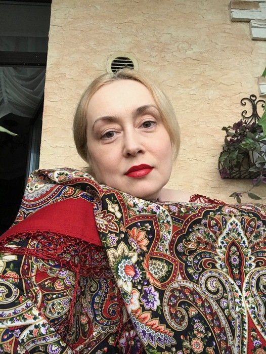 В магазине очень понравился атласный платок Белый танец, цвет достоверно не передался на фото, но всё равно красивый))