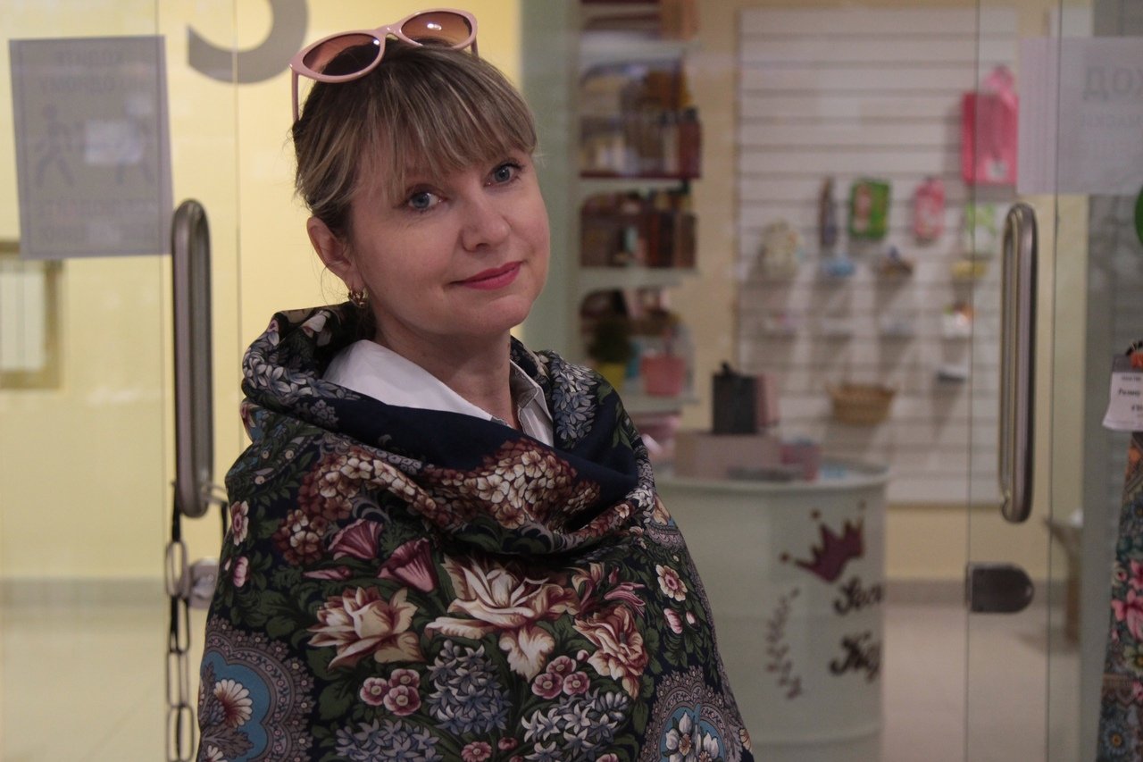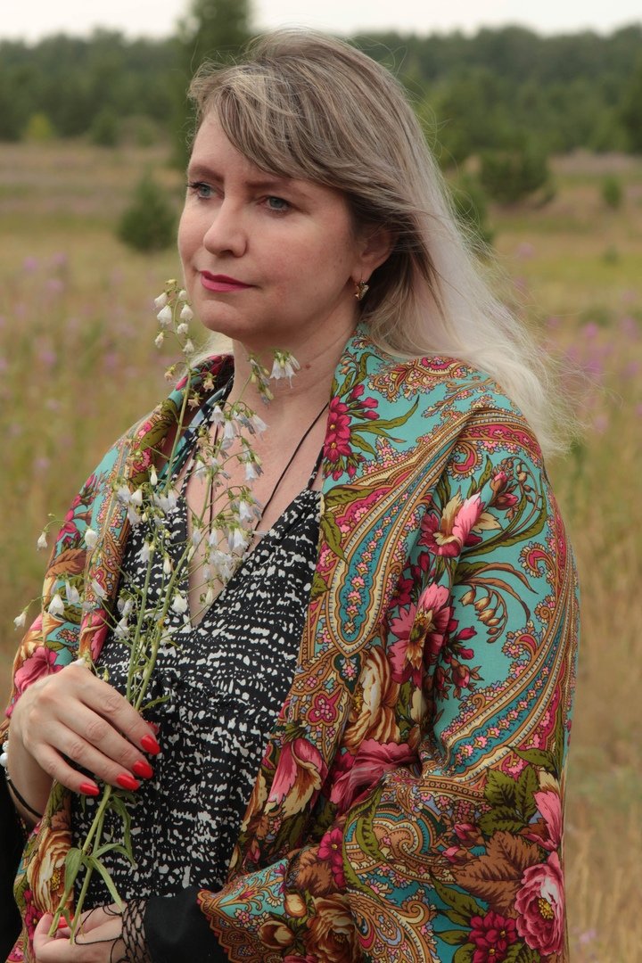 Демонстрируем ношение платков и шалей.