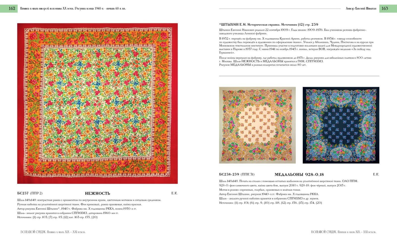 Настоящее издание подготовлено к выпуску в год 225-летия старейшего текстильного предприятия России - Павловопосадской платочной мануфактуры, содержит фотографии 615 платков и шалей из частной коллекции автора и других источников. Фотографии снабжены комментариями и сопровождаются историческими справками, позволяющими составить общее представление об эволюции рисунков павловопосадских платков и шалей на протяжении последних 150 лет существования платочного производства в России. В альбоме представлены фотографии уникальных антикварных шалей с ранее нигде не публиковавшимися рисунками, с выпуска которых прошло более 130 лет. Всего опубликовано более 200 оригинальных или восстановленных старинных рисунков конца XIX – первой половины XX вв., более 200 антикварных и винтажных рисунков советского периода, начиная с 1920-30 гг. прошлого века, более 80 городковских шалей 1950-х-70-х гг., а также, авторские работы известных павловопосадских художников XIX-ХХI вв., среди которых около 100 современных рисунков. Издание содержит богатый иллюстративный материал, может быть интересно и полезно широкому кругу читателей, включая студентов художественных и текстильных учебных заведений, музейных работников, искусствоведов, исследователей, коллекционеров, любителей и собирателей платков в павловопосадском стиле.