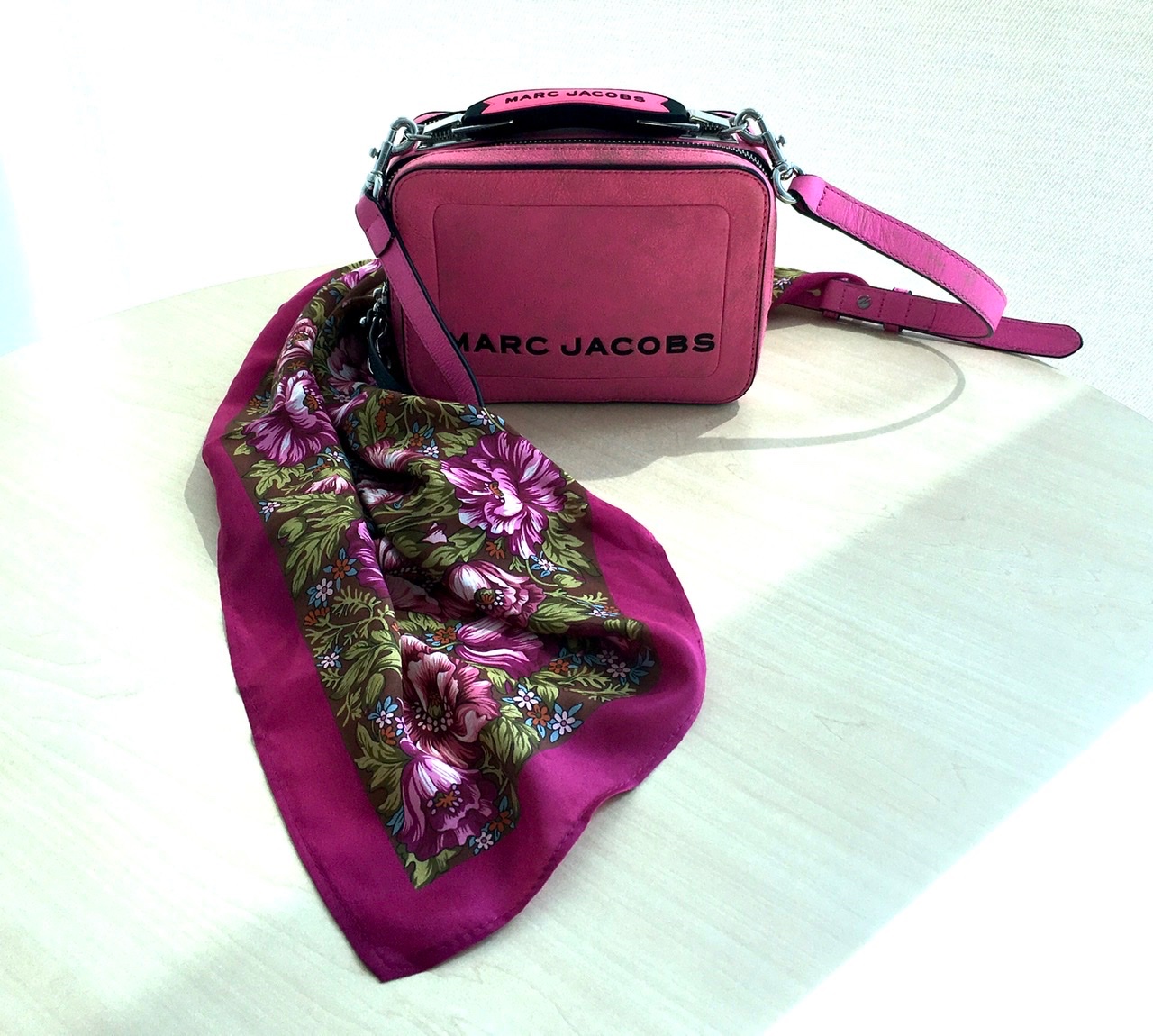 Нежданно-негаданно появилась у меня еще одна сумка Marc Jacobs. Классического бежевого цвета (на фото чуть выбелился). Очень классно смотрится с черными шалями.