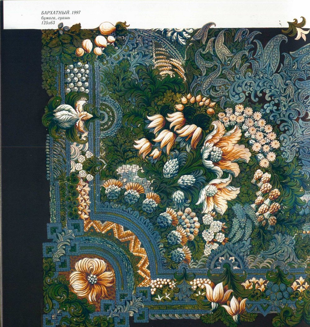 Последняя страничка с кроком платка "Над серебряной водой", 1999 г., бумага, гуашь, 74х74