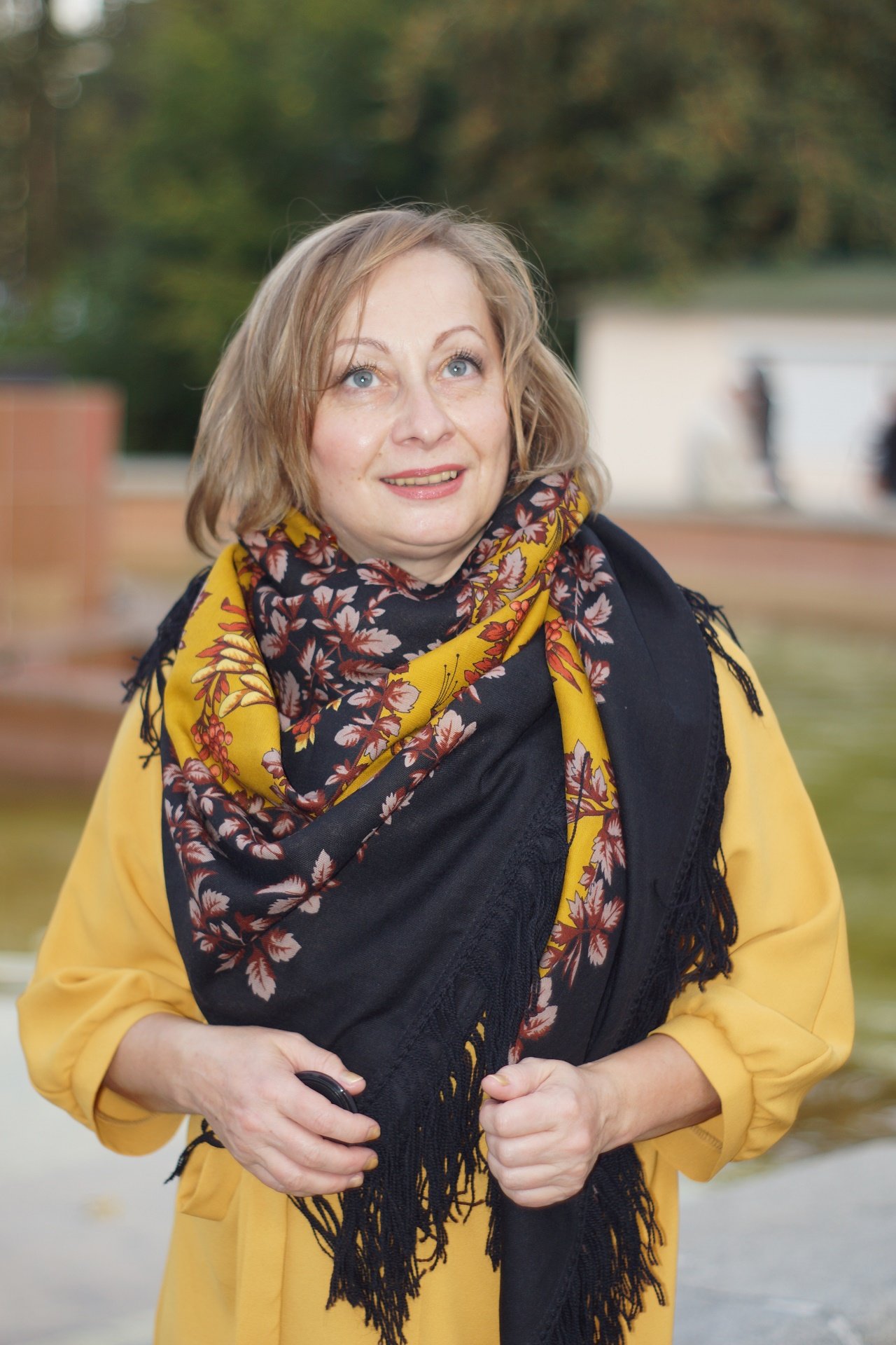 Всегда по-доброму завидую Вашей смелости в выборе шали - они у Вас все звонкие, сочные, раздольные. А носите Вы их с кутюрным шиком, ничего лишнего, никакого хоровода. Хотя всегда почти по плечам, как я люблю))) Любуюсь, учусь. Спасибо!